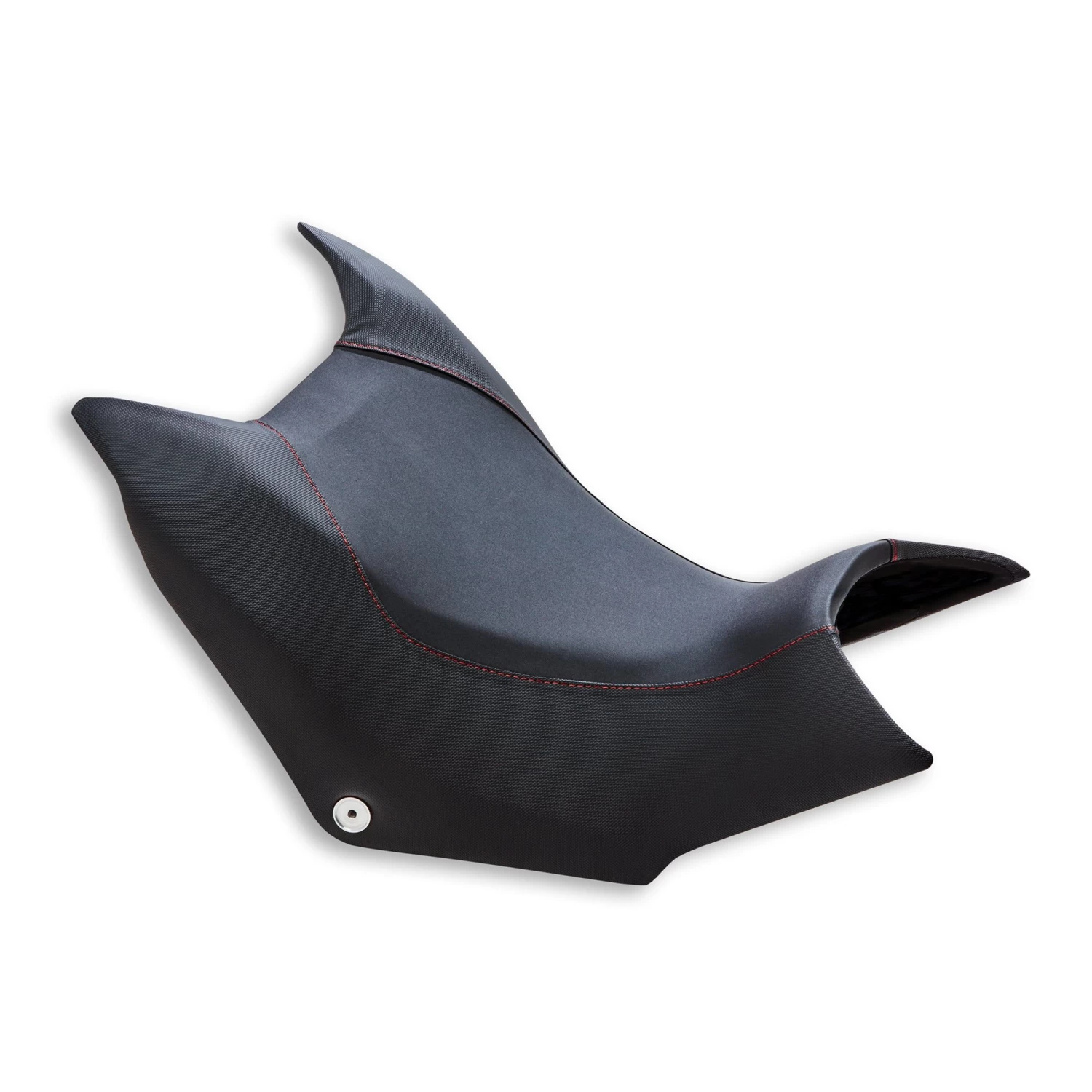 De zithoogte, verhoogd met 20 mm in vergelijking met de standaardversie, in combinatie met de compactere bekleding van schuimstof en technische stof, biedt maximale ondersteuning en dempt de ruwheid van het terrein, waardoor het comfort van rijder en passagier aanzienlijk wordt verbeterd.