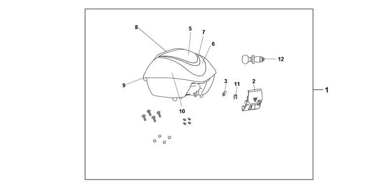 Een 35 liter topkoffer met genoeg ruimte voor een integraal helm of twee jet helmen. Het deksel is in de kleur YR-287 en heeft een snel sluit systeem.