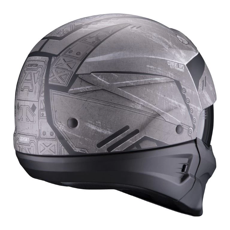 Scorpion laat ook met deze helm weer het customize DNA van het merk zien, door een afneembaar kinstuk te integreren. Hierdoor is deze helm meer dan geschikt voor alle custom, cruiser en naked bike rijders. Zowel met als zonder het kinstuk is de Scorpion EXO-Combat EVO een motorhelm met een agressieve look door onder andere het standaard donkere vizier.