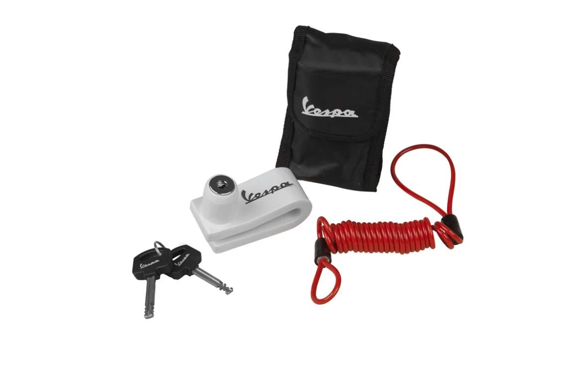 Vespa Schijfremslot met 5mm dikke pin. Inclusief draagtas en geheugen kabel.
